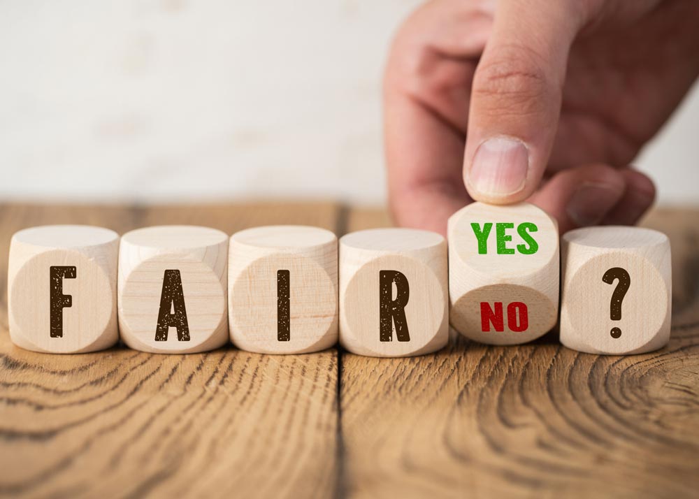 The definition of fair means to be free of favor to any side. But in business we really do favor some things. We favor more education over less, we favor strong work ethic over slacking, we favor experience, and we favor great communication skills. And that's appropriate. Which is a word I far prefer. I like to award compensation appropriately.