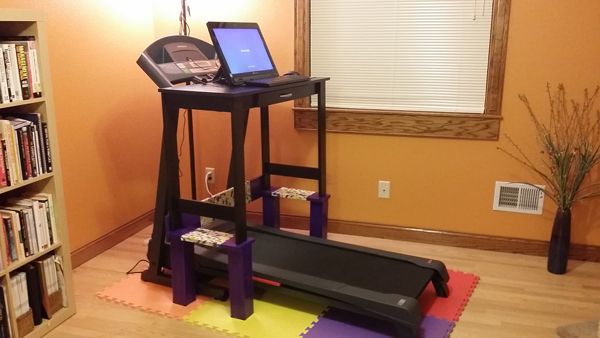 My situation hasn’t changed, so finding time was the real challenge. I thought about making a standing desk, but to me that seems like just another form of not-moving. I made it downstairs to our workout room a few times (yes, we have a fully equipped workout room – which I almost never enter), but found myself distracted by the things that weren’t getting done. I started researching treadmill desks.